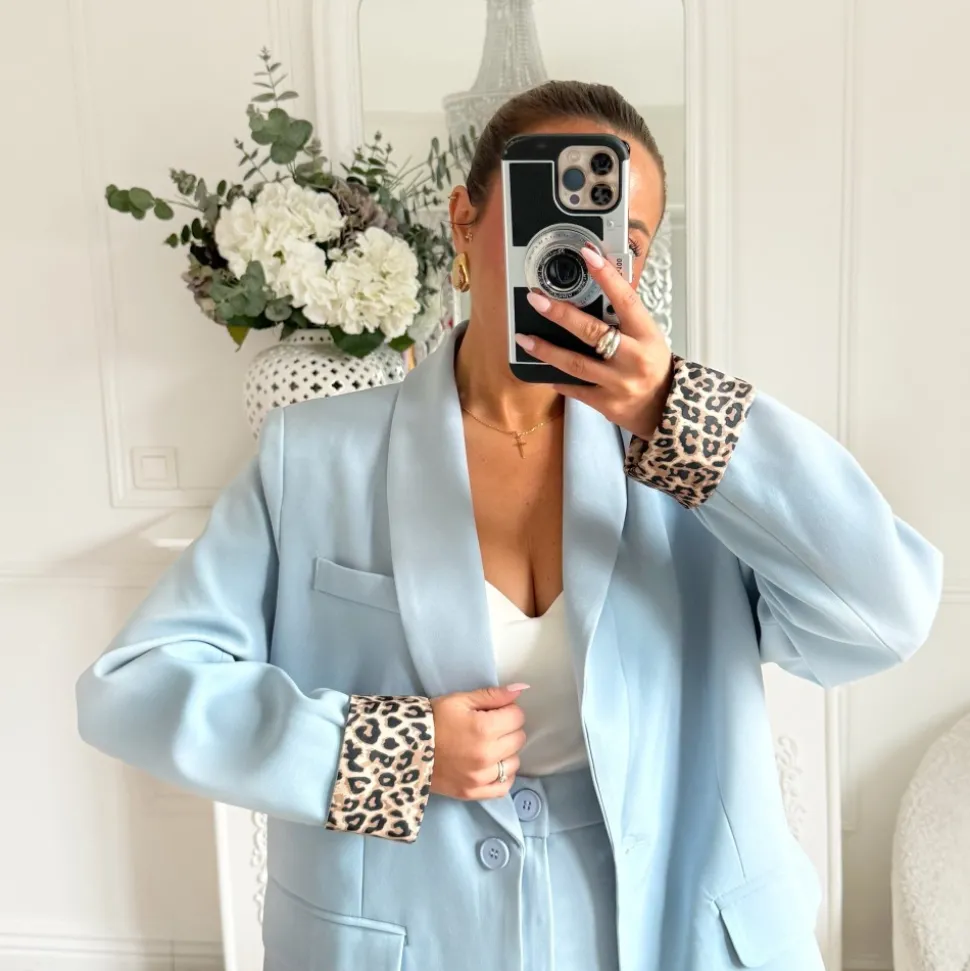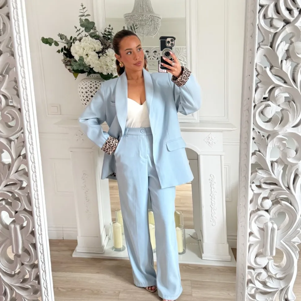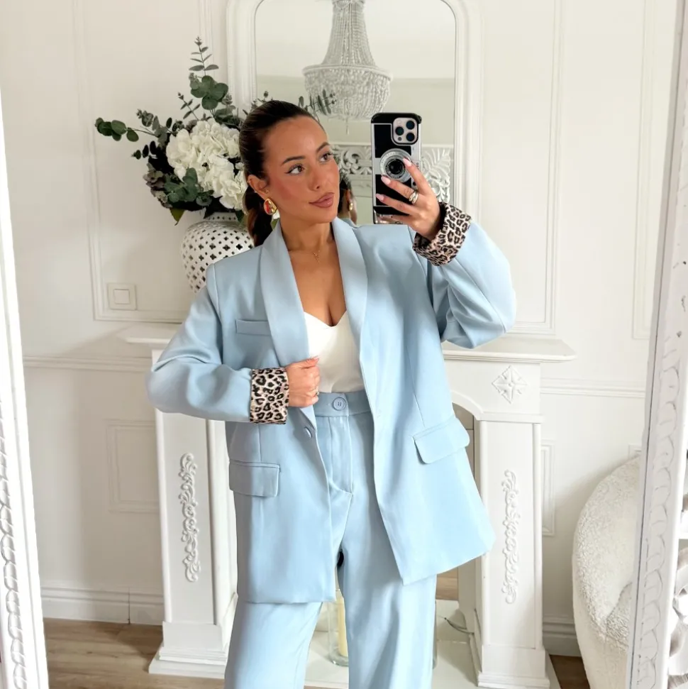 ENSEMBLE SMOKING LÉOPARD BLEU CIEL