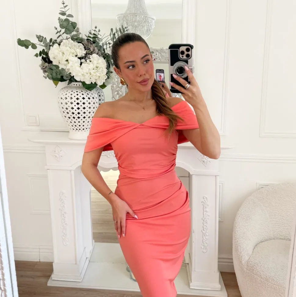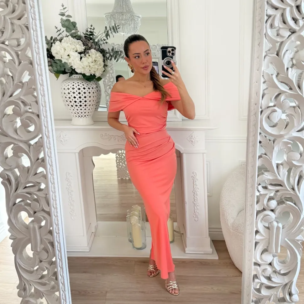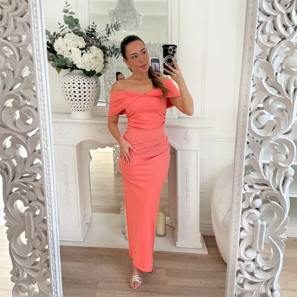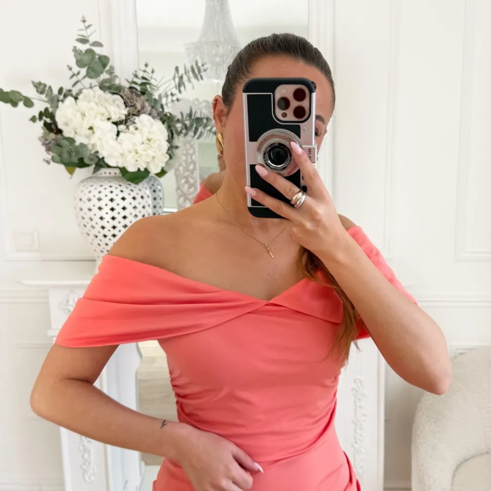 LONGUE ROBE CORAIL EPAULES DÉNUDÉES