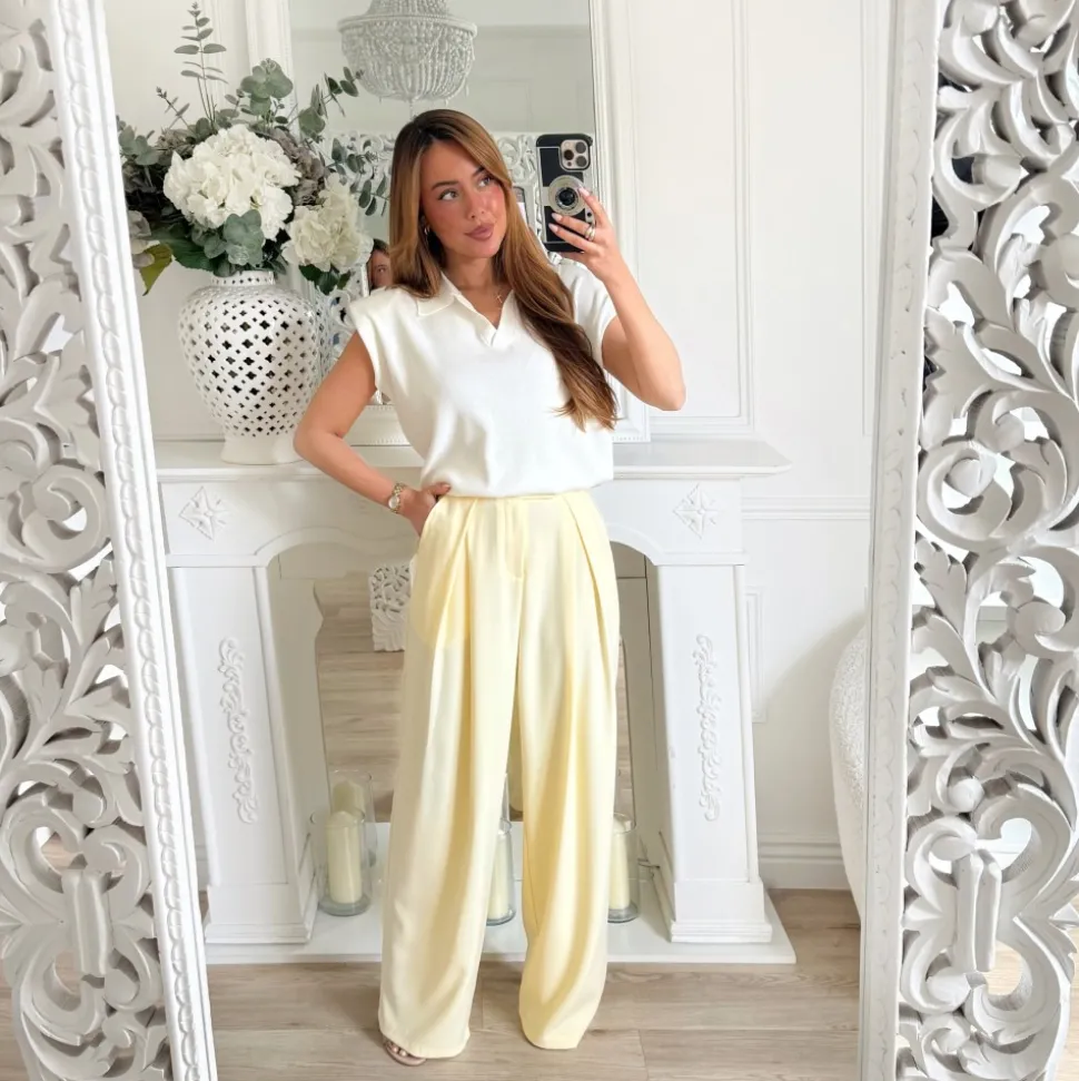 PANTALON TAILLEUR JAUNE PASTEL PREMIUM