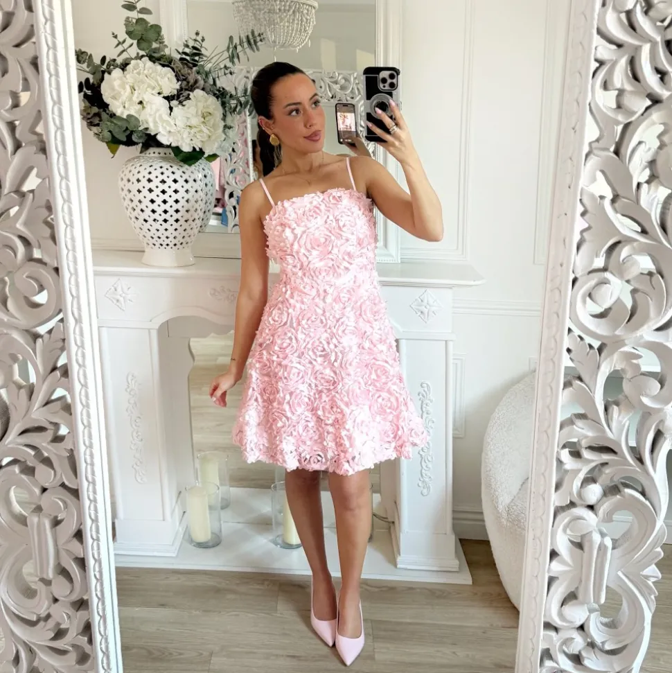 ROBE ROSE PASTEL FLEURS EN RELIEF