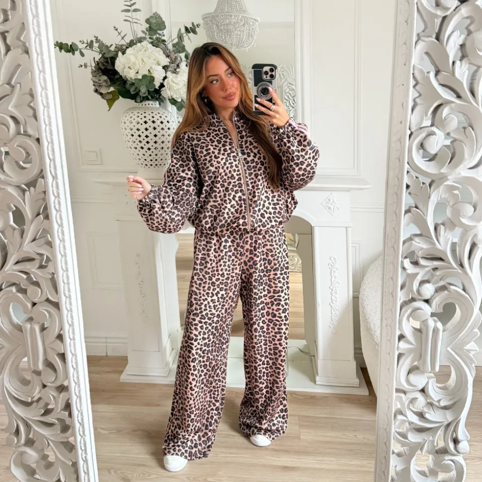 PANTALON JOGGING LÉOPARD BANDES PINK