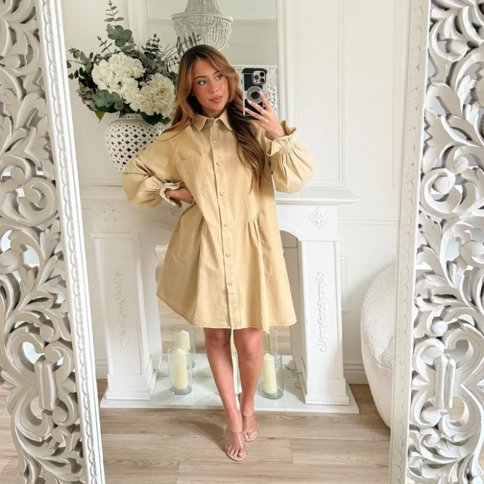 ROBE EN JEAN CAMEL BOUTONS COEURS